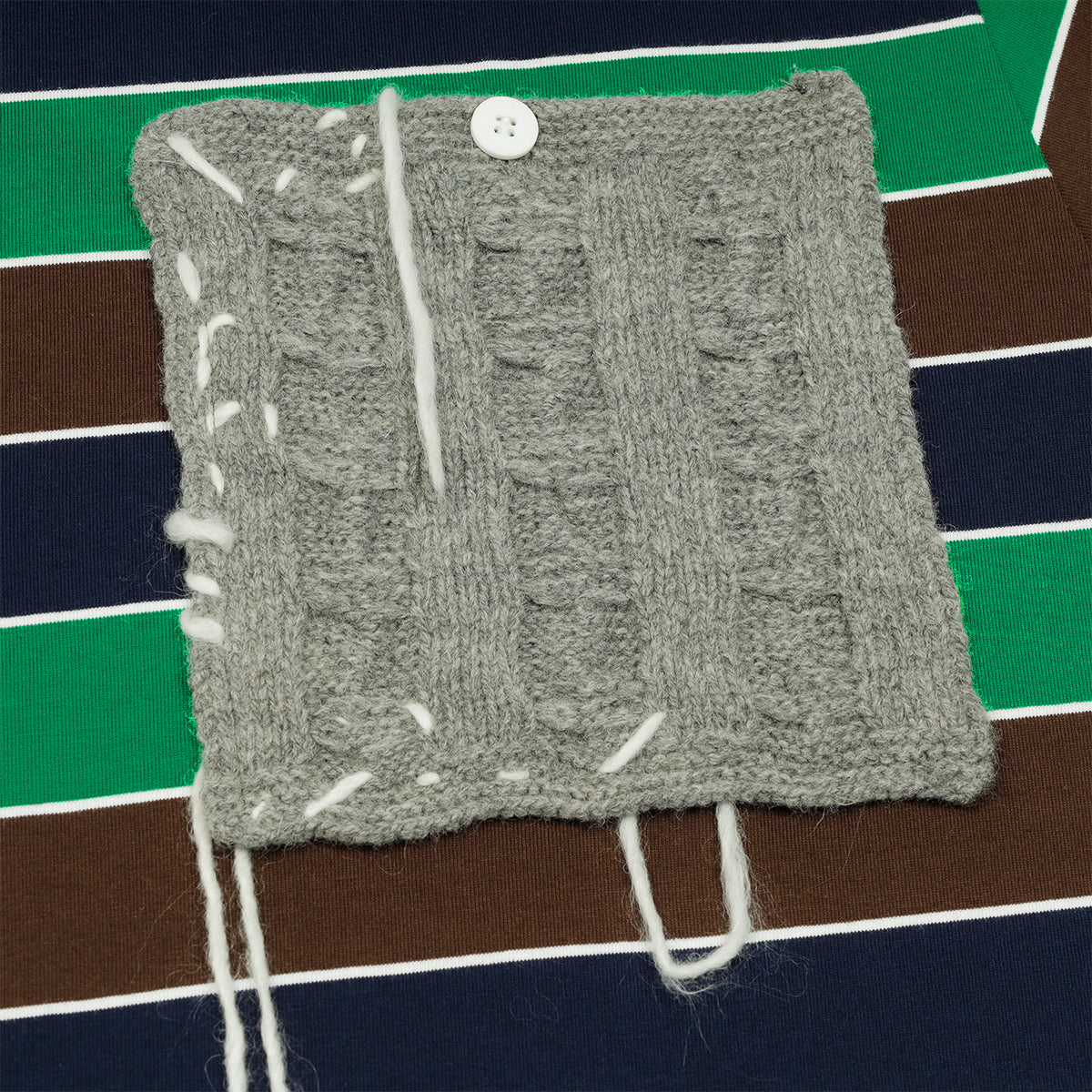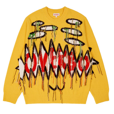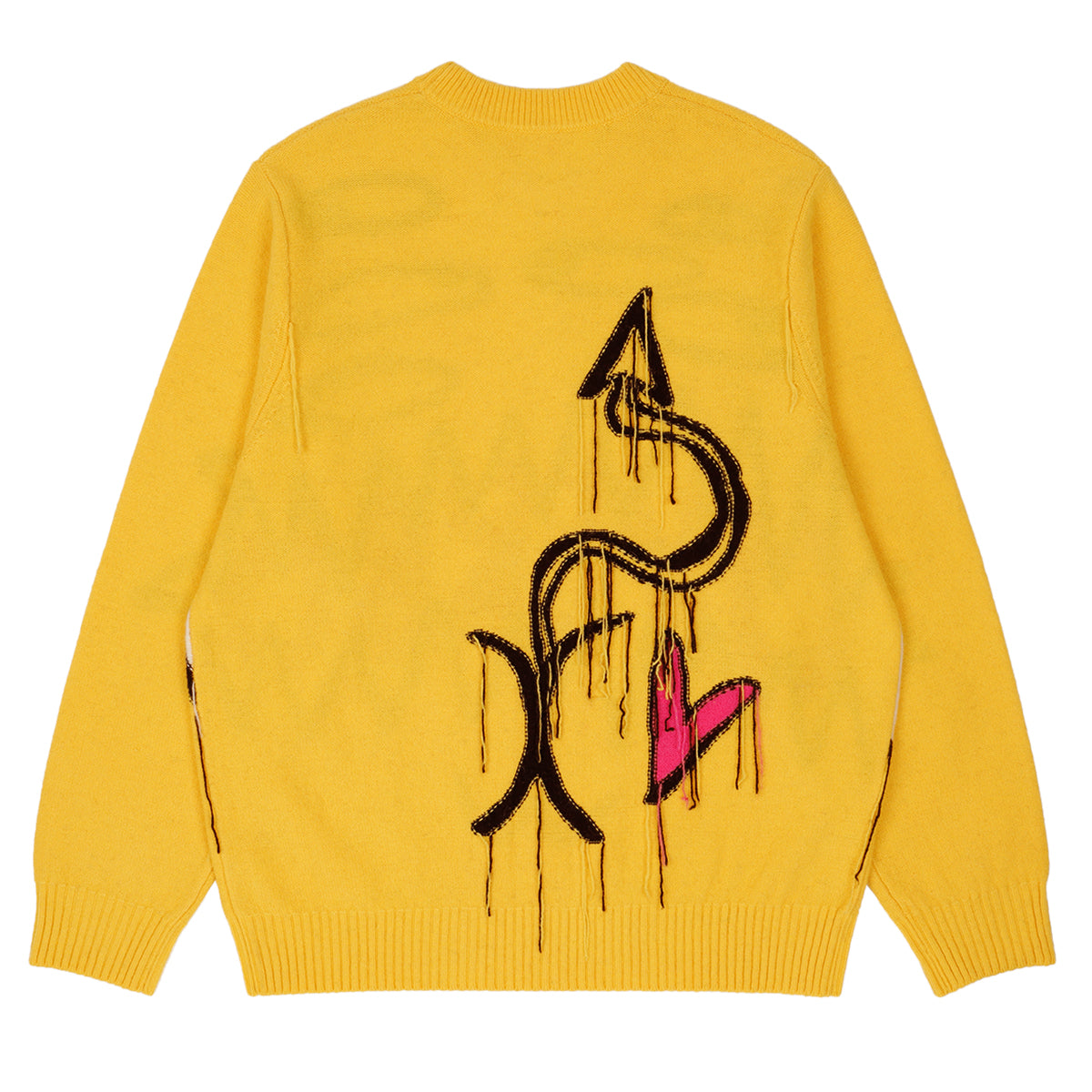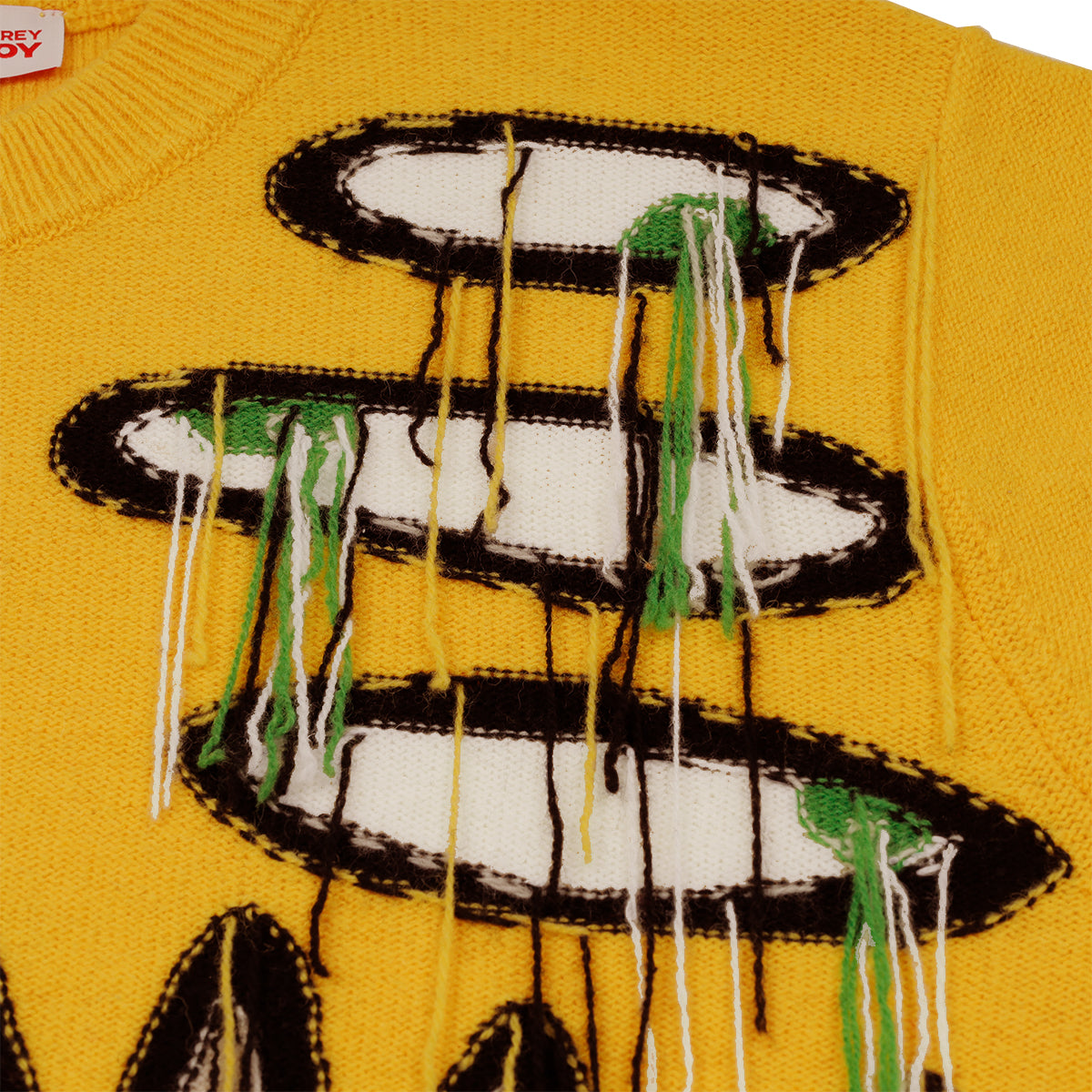 25AWコレクションは、“I Am a Product(私はプロダクトだ)”をテーマに、服と身体、そして社会的アイデンティティの関係性を鮮烈に問い直しました。デザイナーは「遊び」と「実存的な憂い」という二項の緊張を軸に据え、伝統的なイングリッシュ・リスペクタビリティを大胆に解体。アシンメトリーなテーラリングや切り裂かれたジャージー、耳付きフードニット、カラフルなマルチニット、変形クロッシェバッグなど、反骨とユーモアを併せ持つ造形を打ち出しました。素材ではフリンジ、ねじれ、クロッシェ、毛糸の質感を自在に操り、“崩壊”と“生成”が交錯する瞬間を服の上に刻印。カラーパレットはブラックやグレーなどのニュートラルを基調に、鮮やかな差し色を挟み込み、ダークさと高揚感のコントラストを描きました。また、カバレットやカウンターカルチャーといった文化的要素を参照し、アヴァンギャルドでクィアな創造性を体現。アイデンティティや存在の揺らぎを、祝祭的かつ挑発的に可視化するコレクションとなりました。
