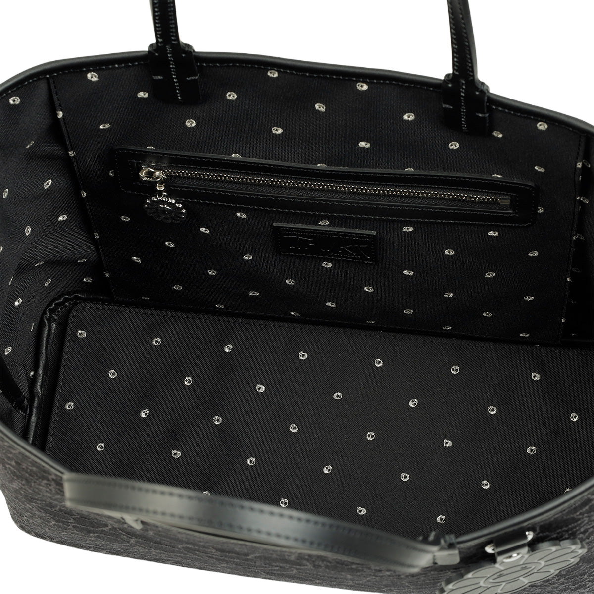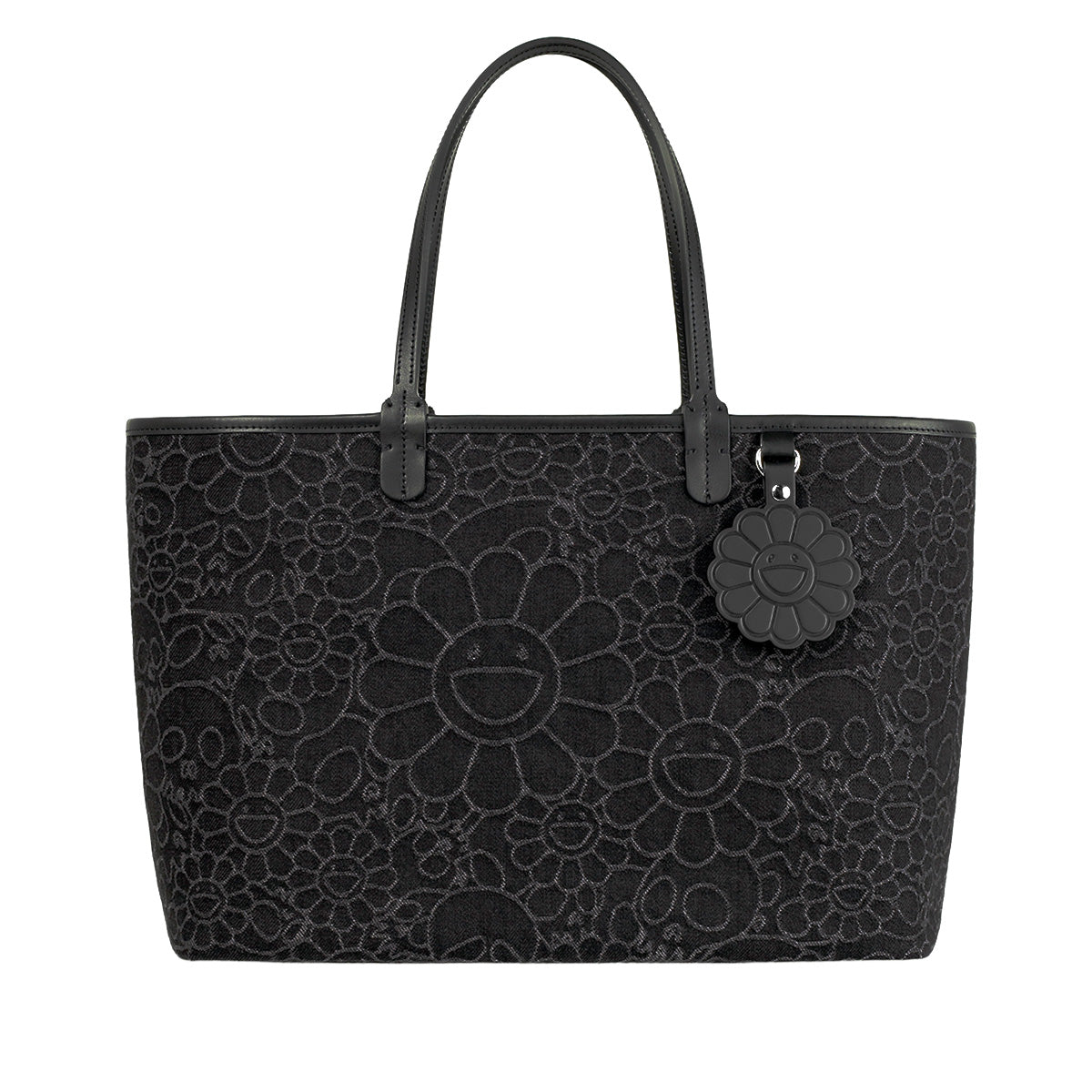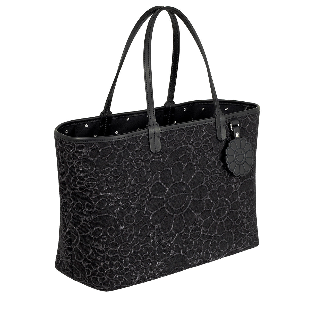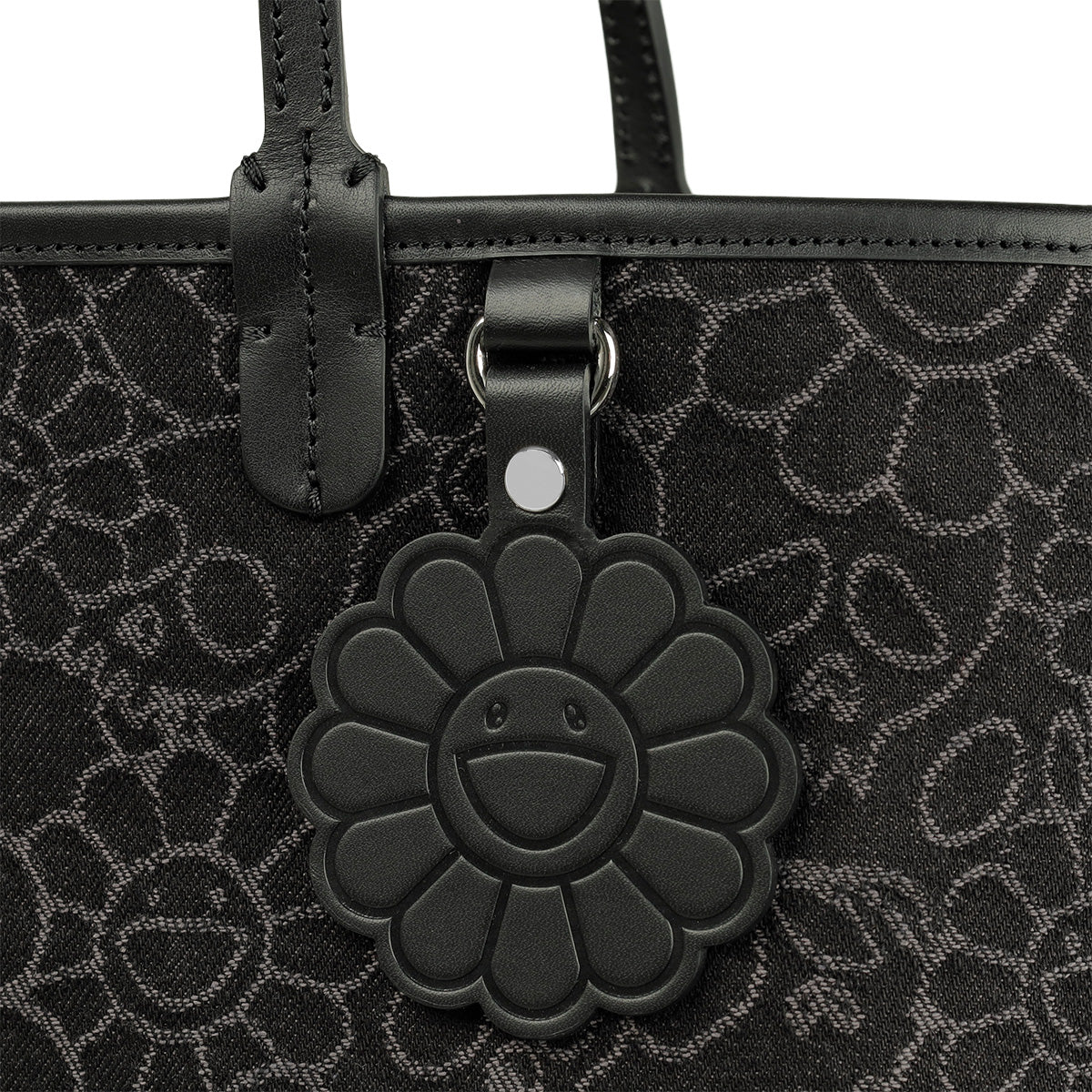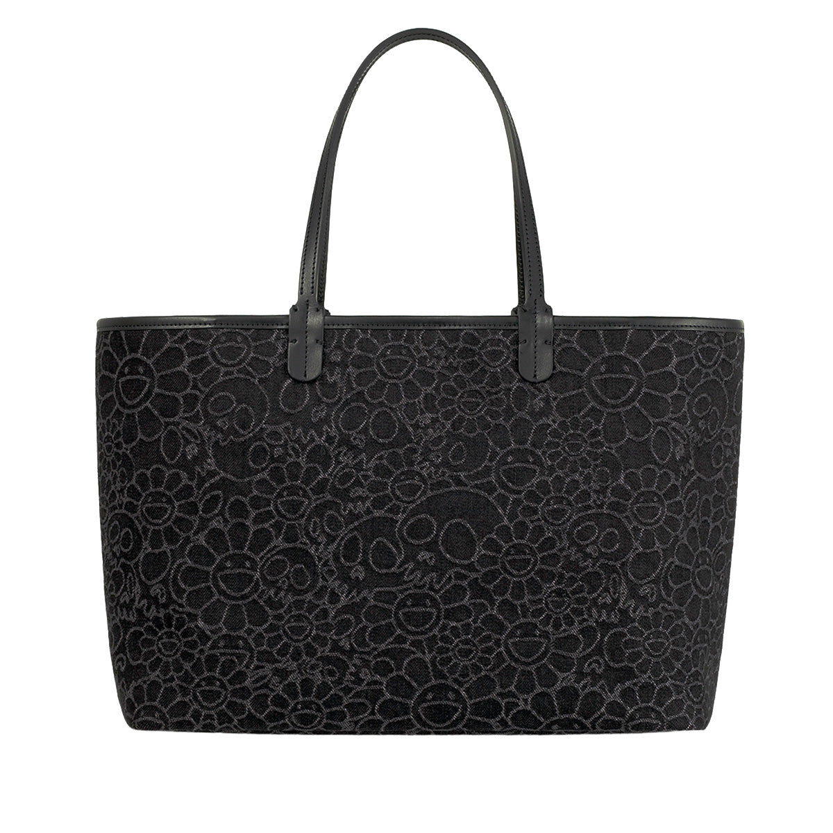 Flowers & Skulls Jacquard Denim Leather Tote bag -Large-