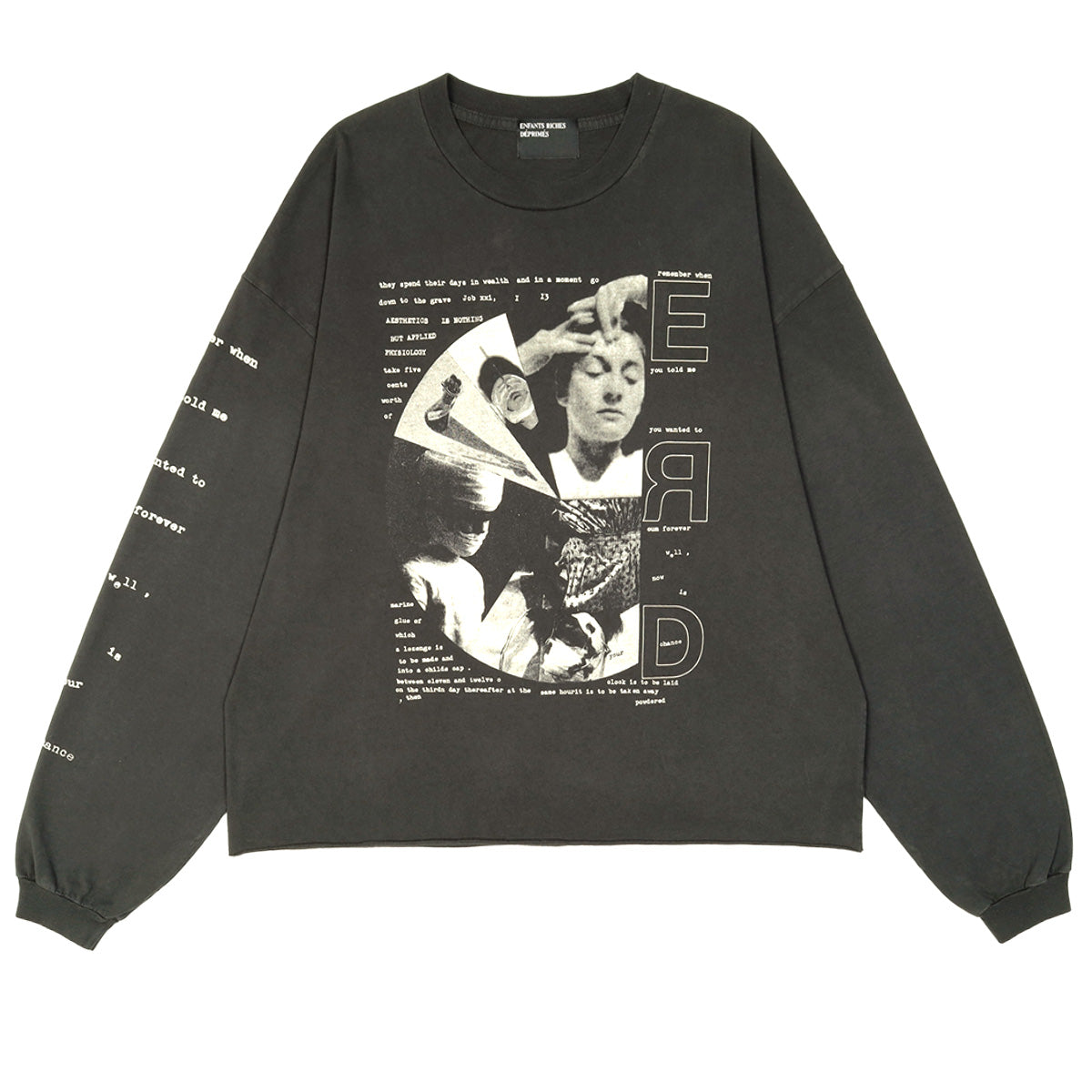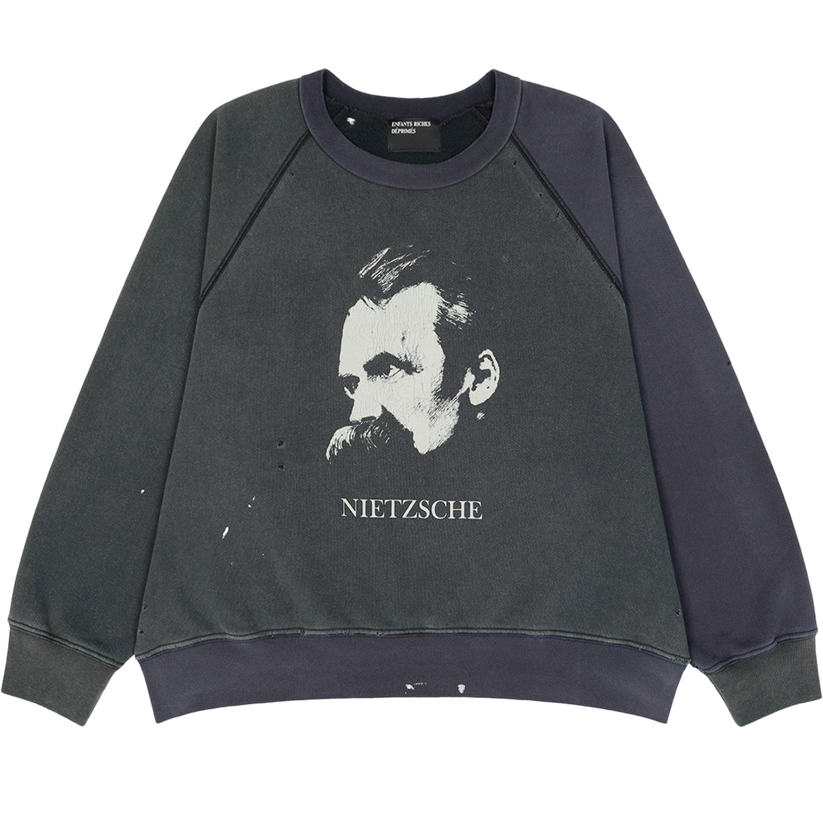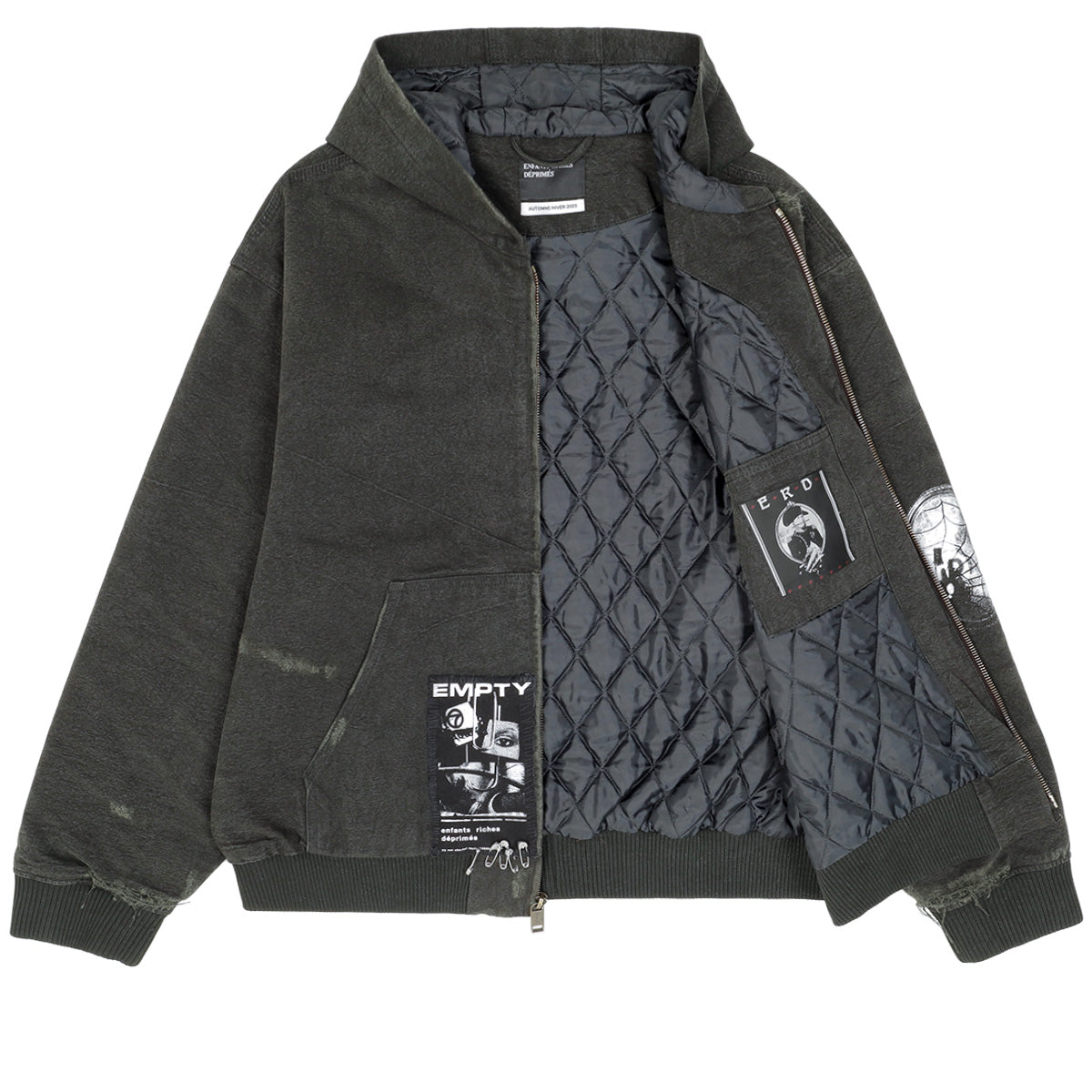 ENFANTS RICHES DEPRIMES 由亚特兰大设计师 Henri Alexander Levy 于 2012 年创立,总部位于巴黎和洛杉矶。品牌秉承法国朋克文化,正如其名,意为“沮丧的富家子弟”。其前卫设计灵感源自朋克摇滚,体现在夹克、连帽衫、针织衫和裤子等一系列单品中,并以细致的手工工艺、独特的印花、做旧处理和 DIY 拼布工艺为特色。其独特的风格将朋克精神与奢华气质完美融合,持续吸引着全球时尚爱好者的目光。