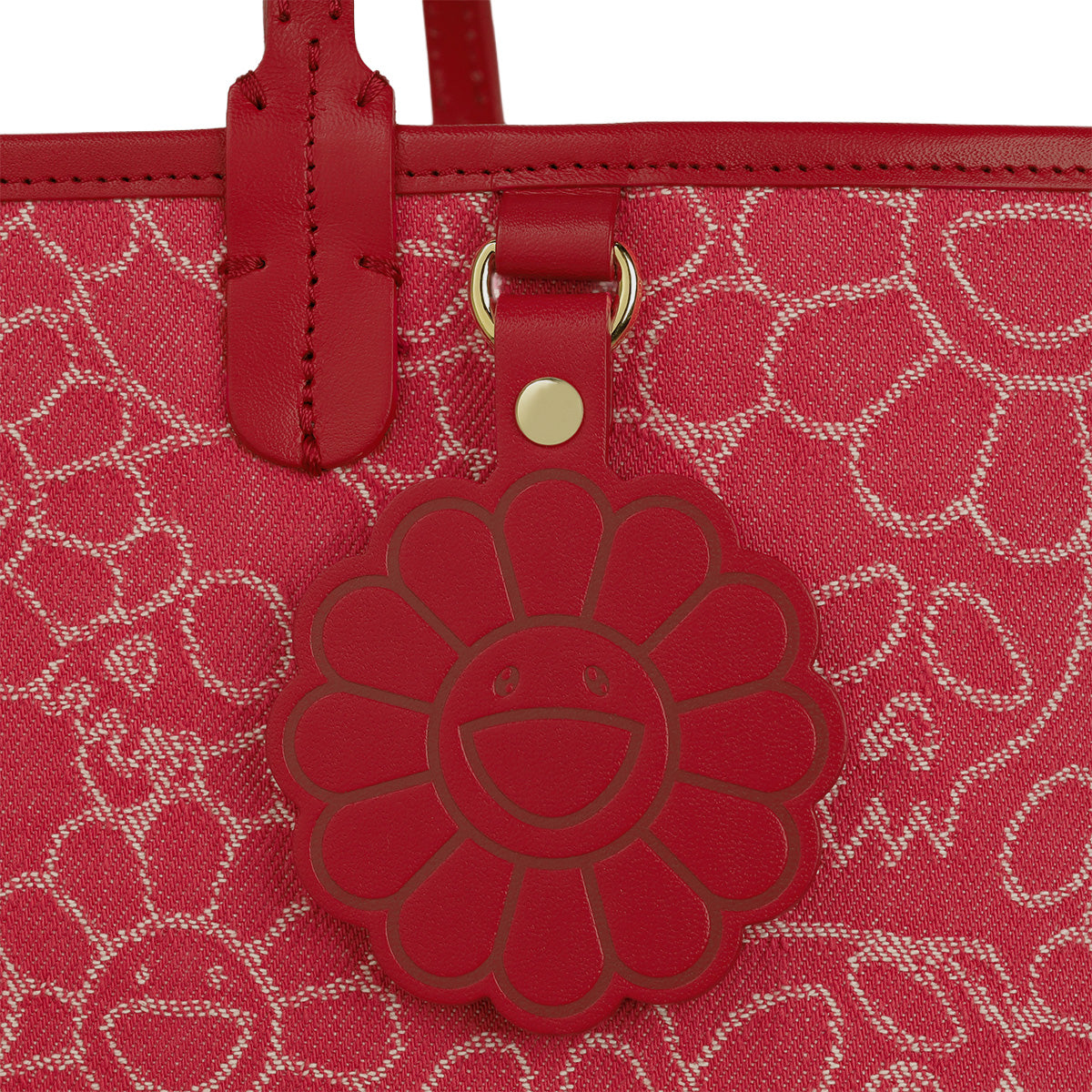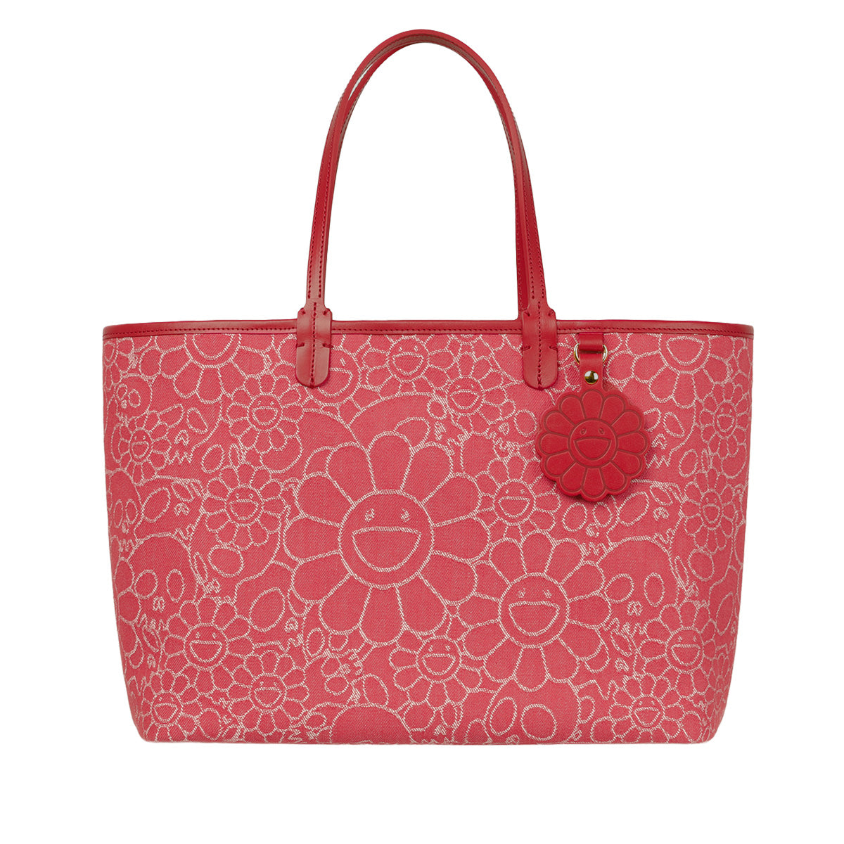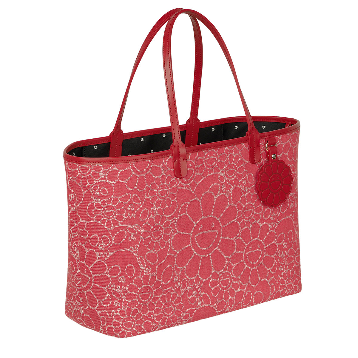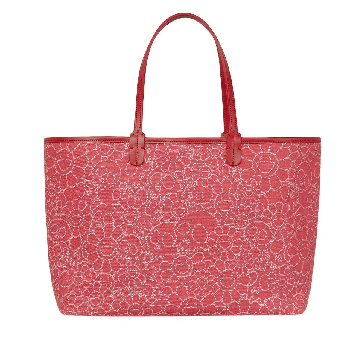 Flowers & Skulls Jacquard Denim Leather Tote bag -Medium-